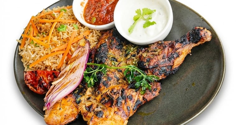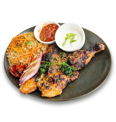 Charcoal chicken with kabsa rice