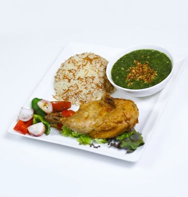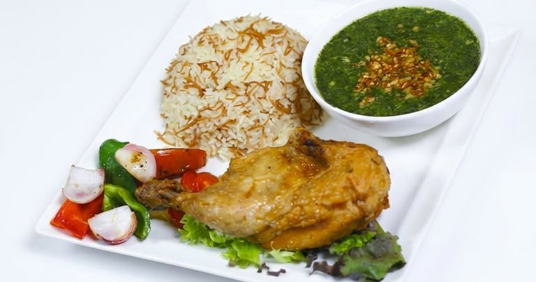 Fried Chicken-vermicelli rice- Molokhia
