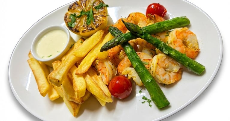 جمبري مقلي مع بطاطس مقلية